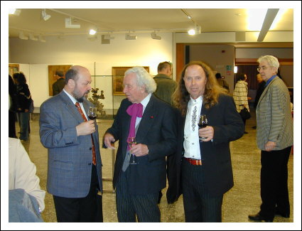 Dr. Gert Ammann, Direktor des Landesmuseum in Innsbruck mit Künstler Amadeus Bortolotti, Kulturassessor Dr. Bruno Hosp, Walterhaus Bozen 2003.