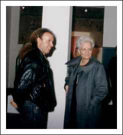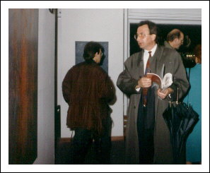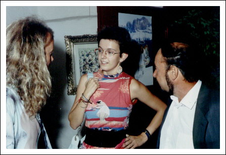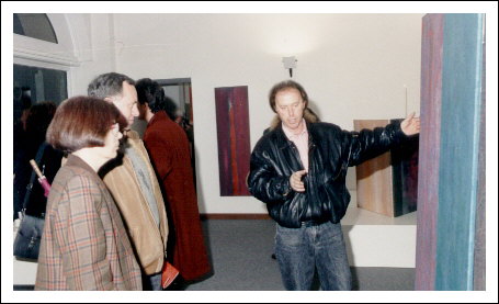 Kunstkritikerin Dr. Inga Hosp, Kunstkritiker und Künstler Dr. Josef Unterer, eröffnen die Ausstellung „Farbenregen“ in der Rathausgalerie Eppan,1991.