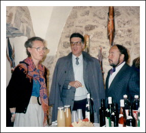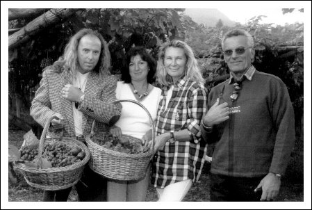 Psychologin, Dr. Donatella Peruzzo, Unternehmerin, Laura Bensi Oberrauch, Bürgermeister Dr. Marcello Ferarri und Amadeus im Weingarten Kaltern (BZ), 1998.