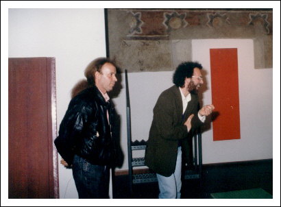 Anni Plieger komplimentiert sich mit Amadeus, Tischlerhaus,Schloss Prösels, 1989.