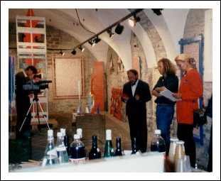 Felsenkeller, Leimburg, Treffen der Bildenden Künstler, Stadtsrätin Dr. Inge Bauer Polo, Künstler Wolfgang Meraner und Künstler Amadeus Bortolotti, 16.01.1998