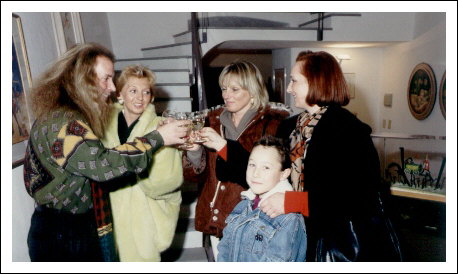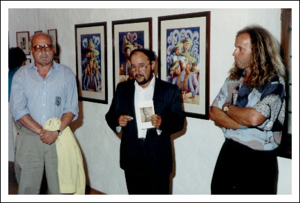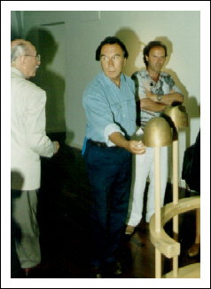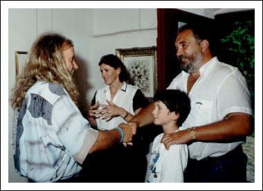 Fam. Norbert Zingerle beehrt den Künstler Amadeus mit einem überraschenden Ausstellungsbesuch, 1989.