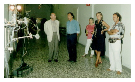 Kunstkritiker Pierluigi Siena, Dirigent Claudio Abbado mit Frau und Amadeus Bortolotti im Museion, anlässlich der Cybernetikausstellung, 1993.