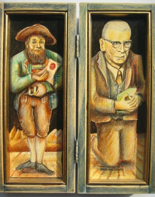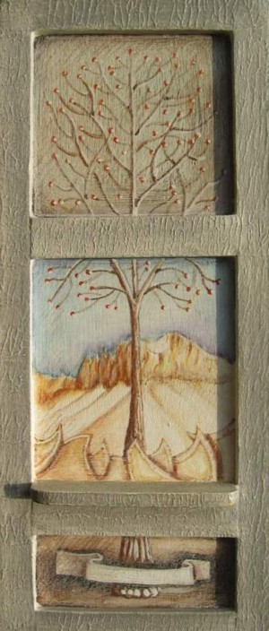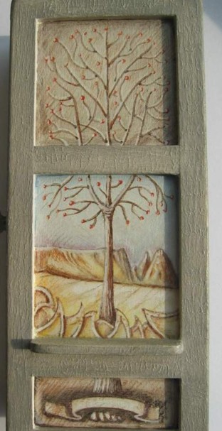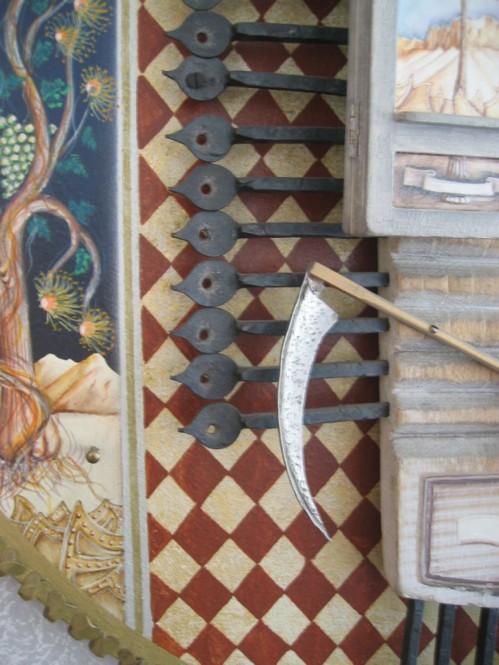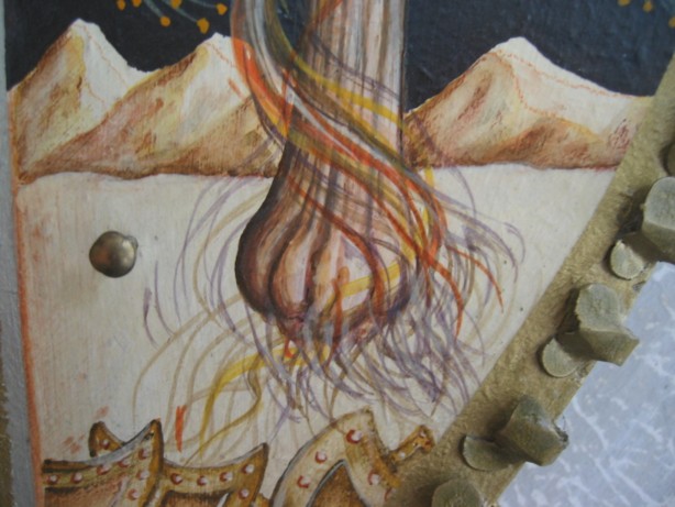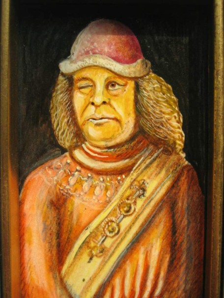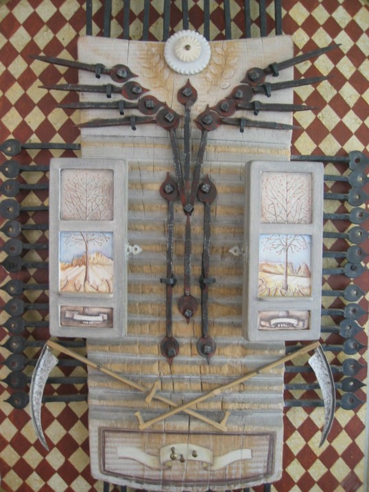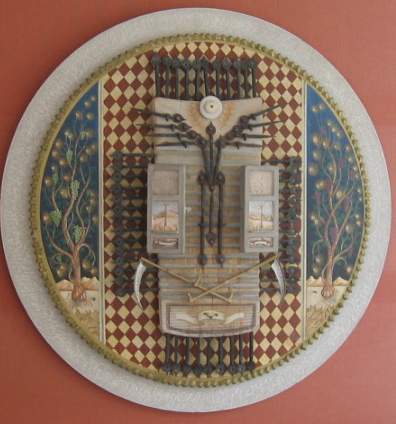 Titel: Schachzüge im Wandel des Zeitgeistes Technik: Malerei auf Holz mit Einsatz verschiedener Materialien Entstehungsjahr: 1985 Durchmesser: 80 cm